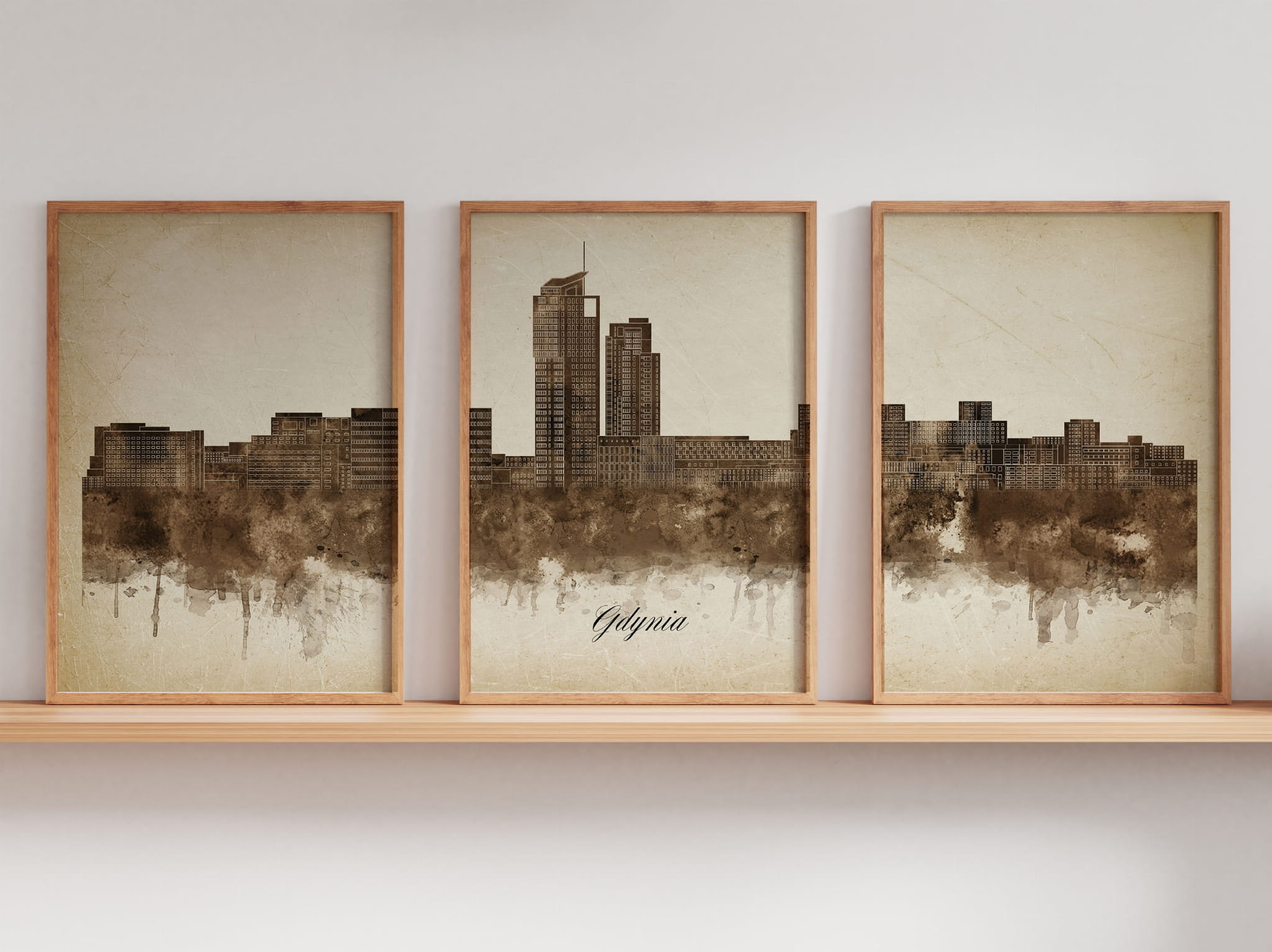 Tryptyk Skylines Gdynia w stylu Vintage, Styl akwarelowy
