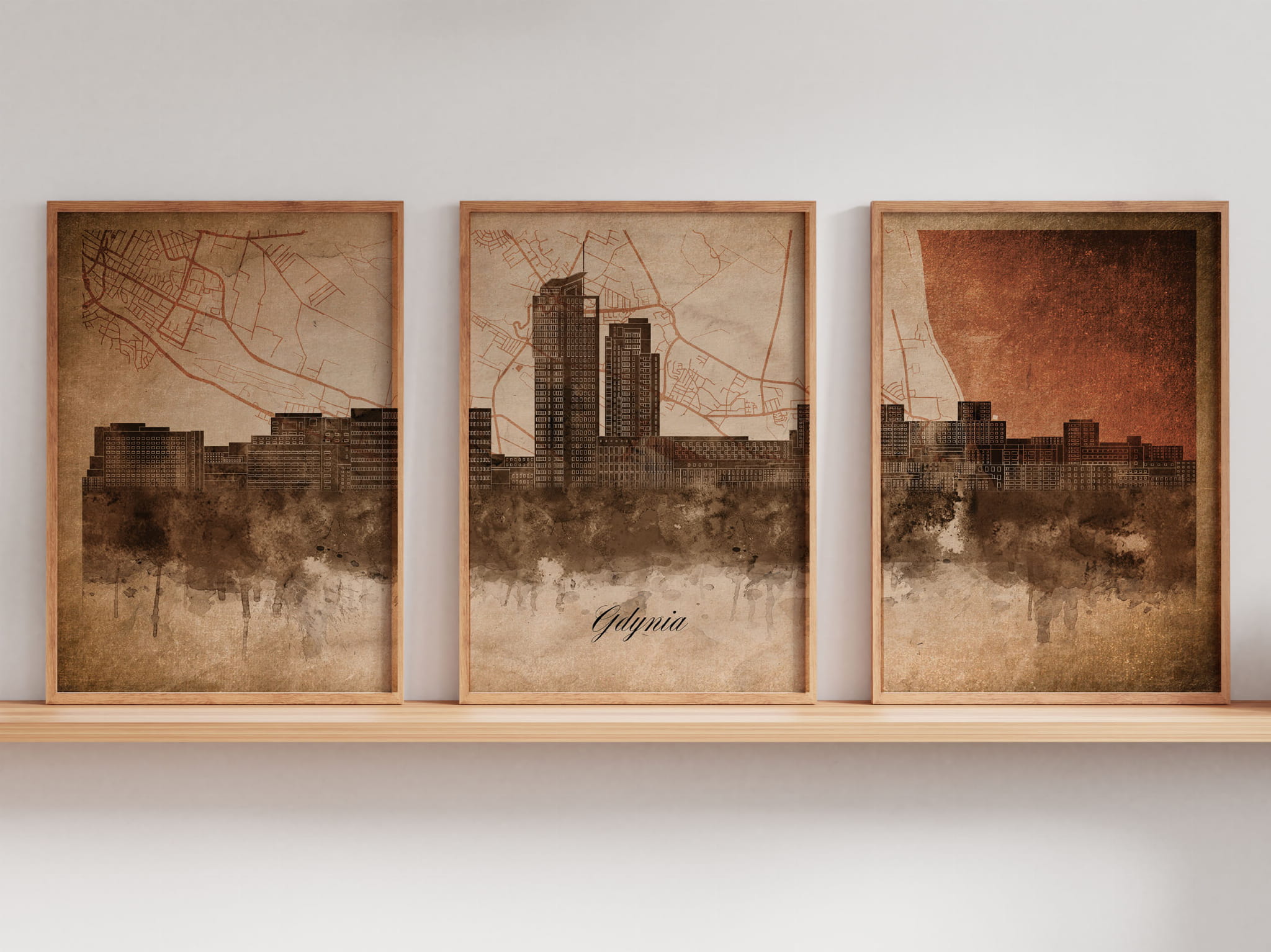 Tryptyk Skylines Gdynia w stylu Vintage, Styl akwarelowy