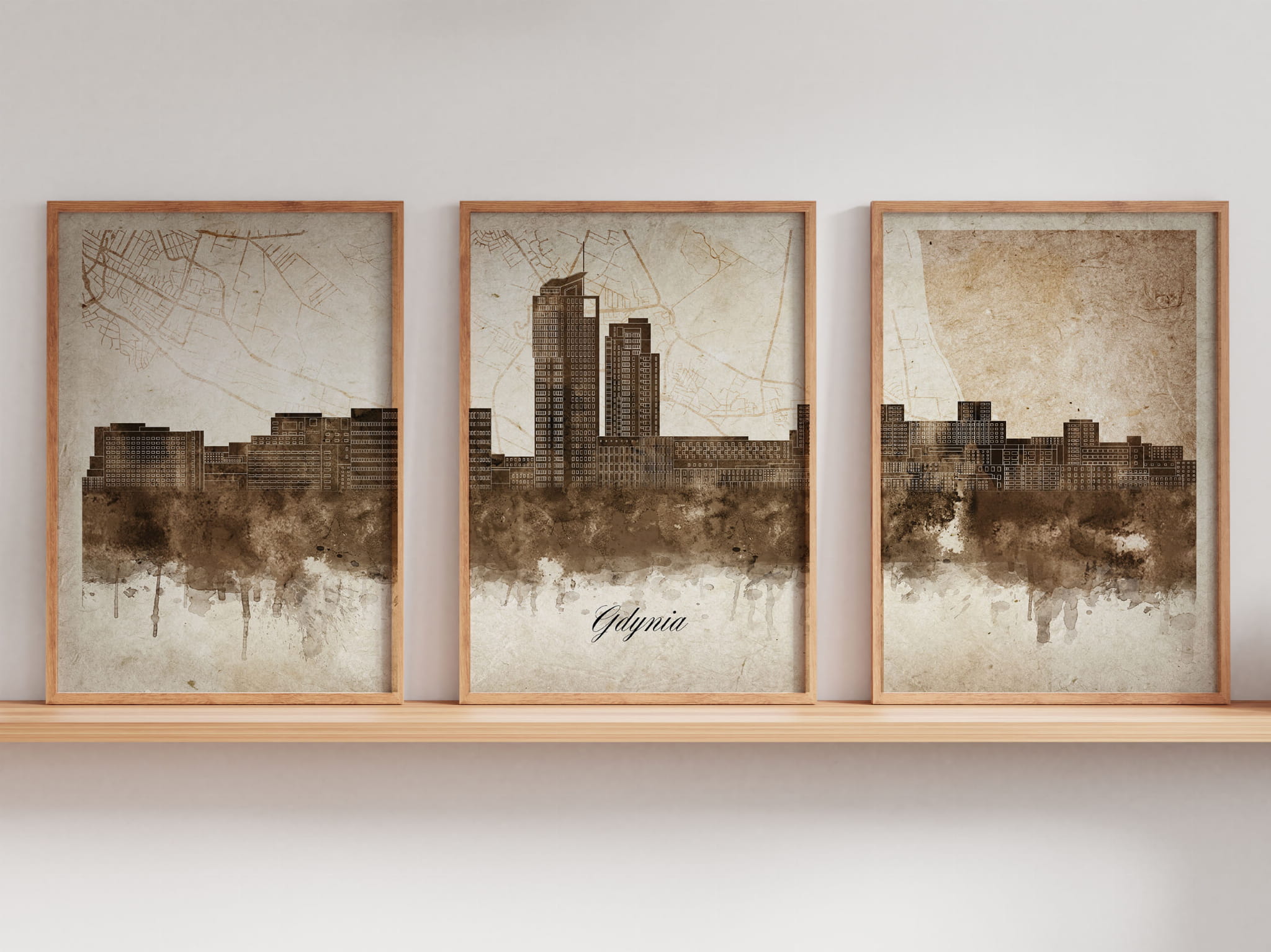 Tryptyk Skylines Gdynia w stylu Vintage, Styl akwarelowy