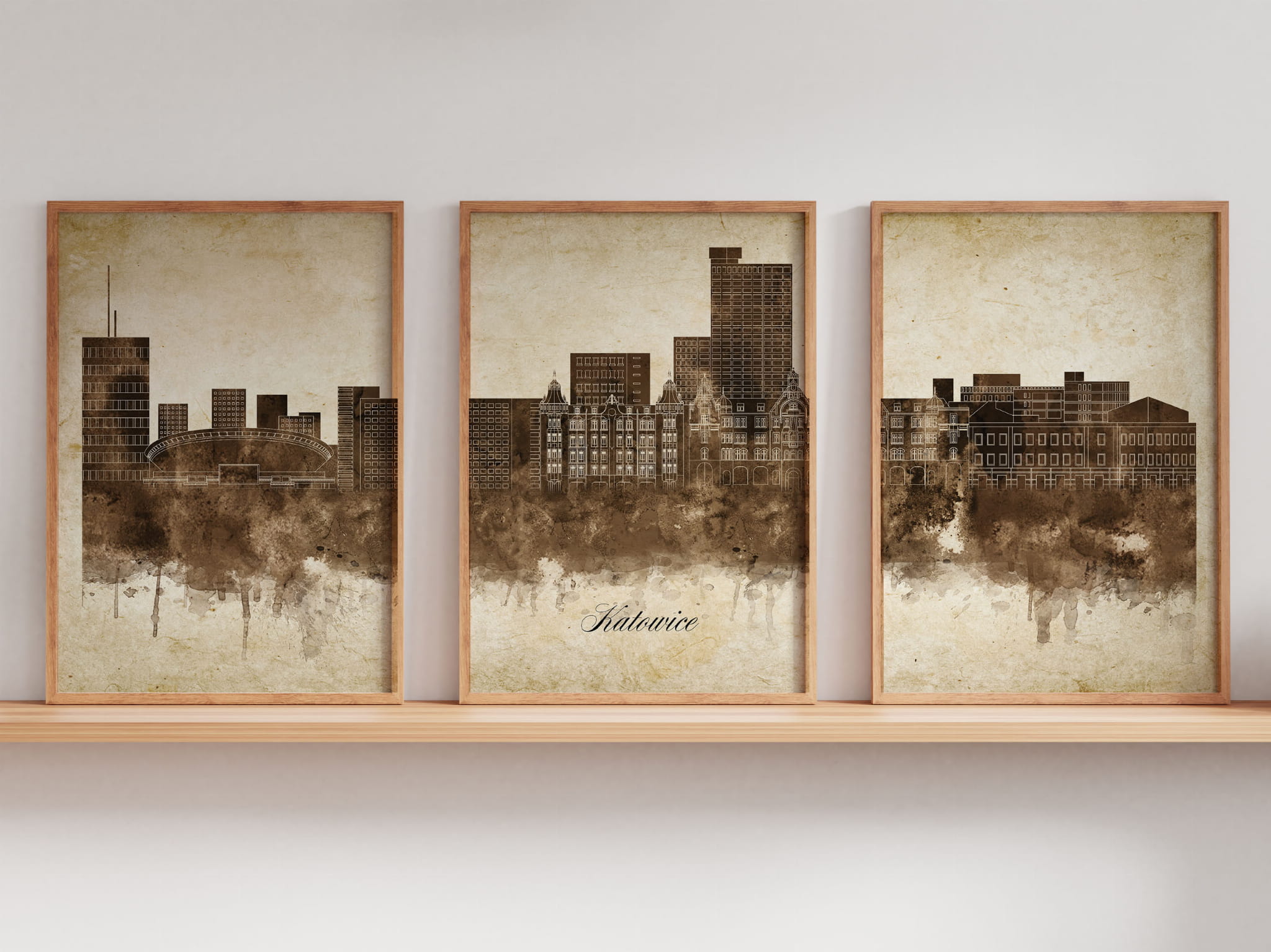 Tryptyk Skylines Katowice w stylu Vintage, Styl akwarelowy