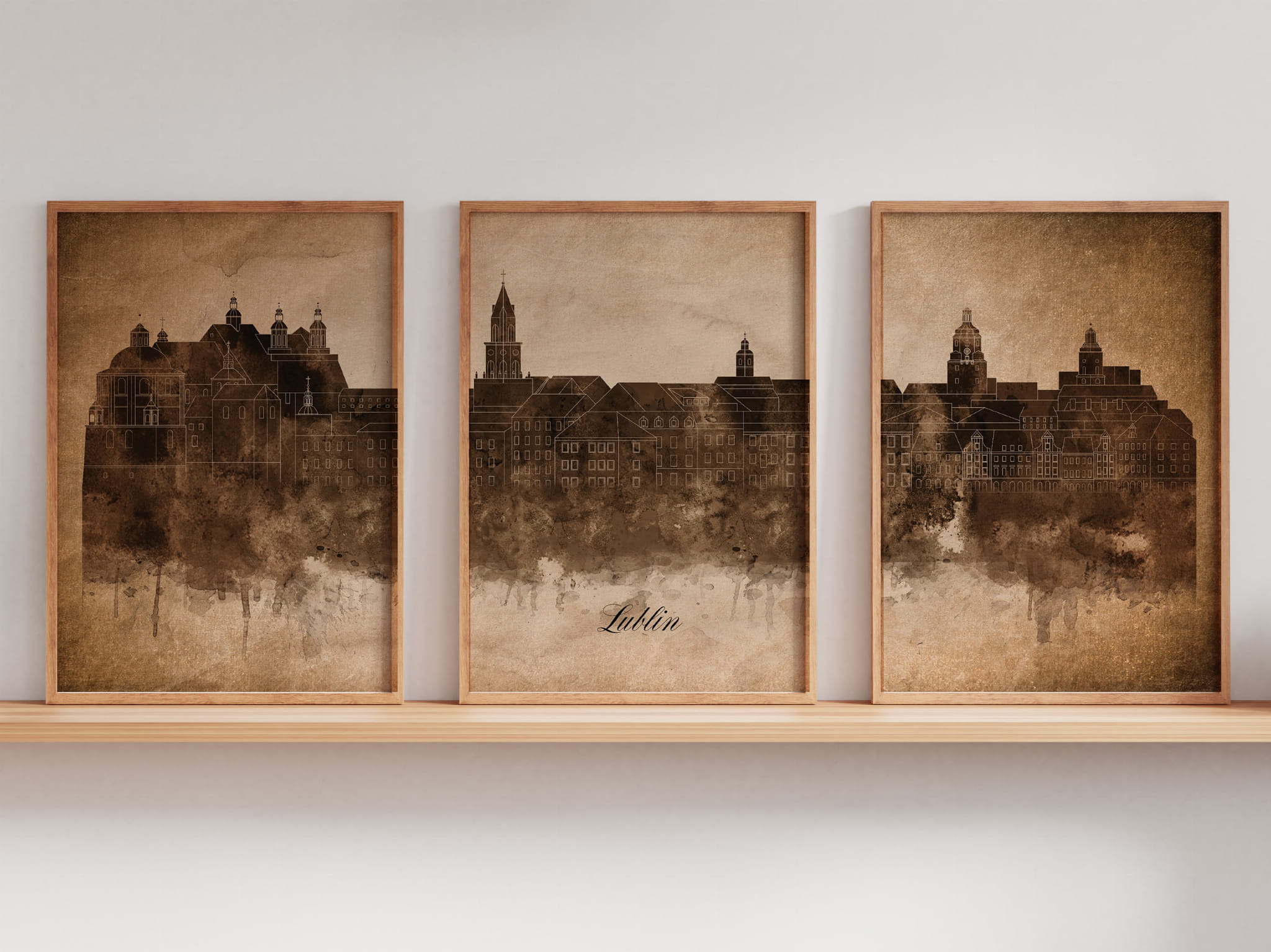 Tryptyk Skylines Lublin w stylu Vintage, Styl akwarelowy