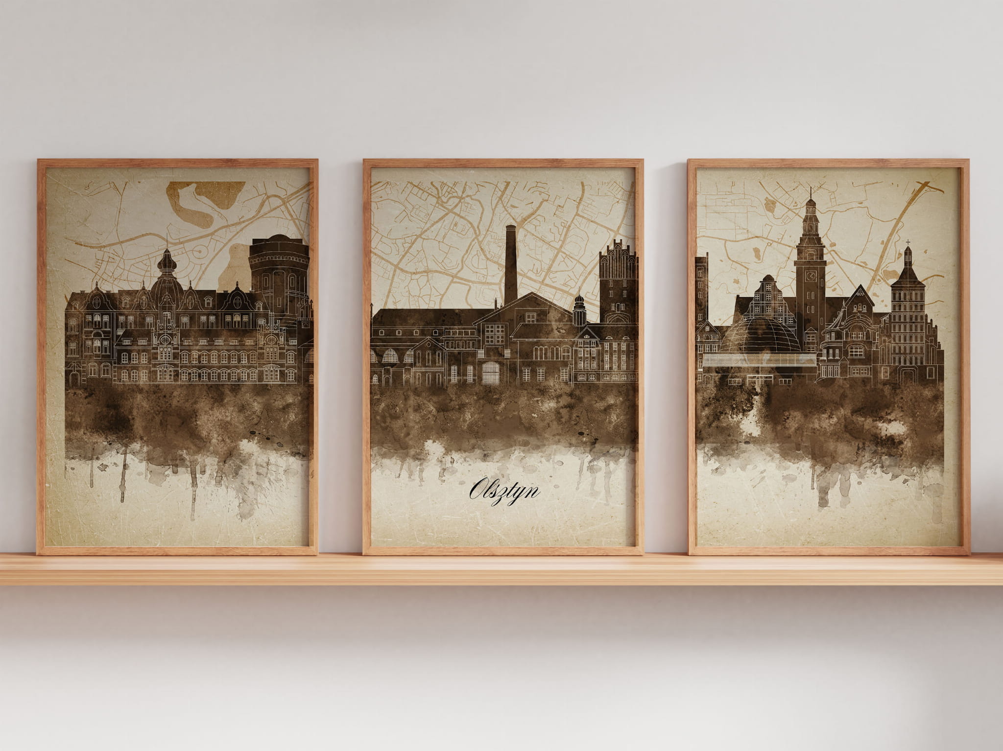 Tryptyk Skylines Olsztyn w stylu Vintage, Styl akwarelowy