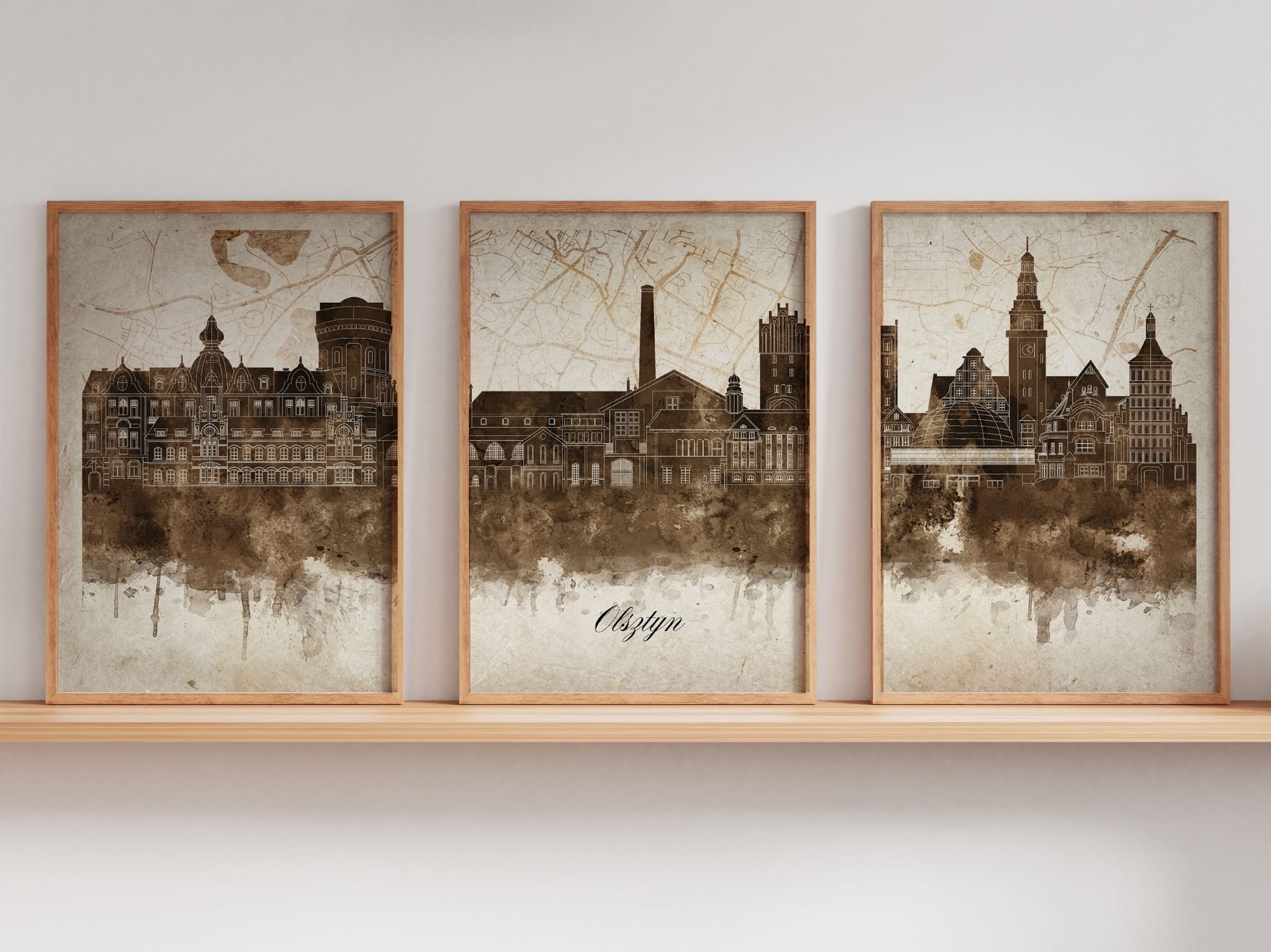 Tryptyk Skylines Olsztyn w stylu Vintage, Styl akwarelowy
