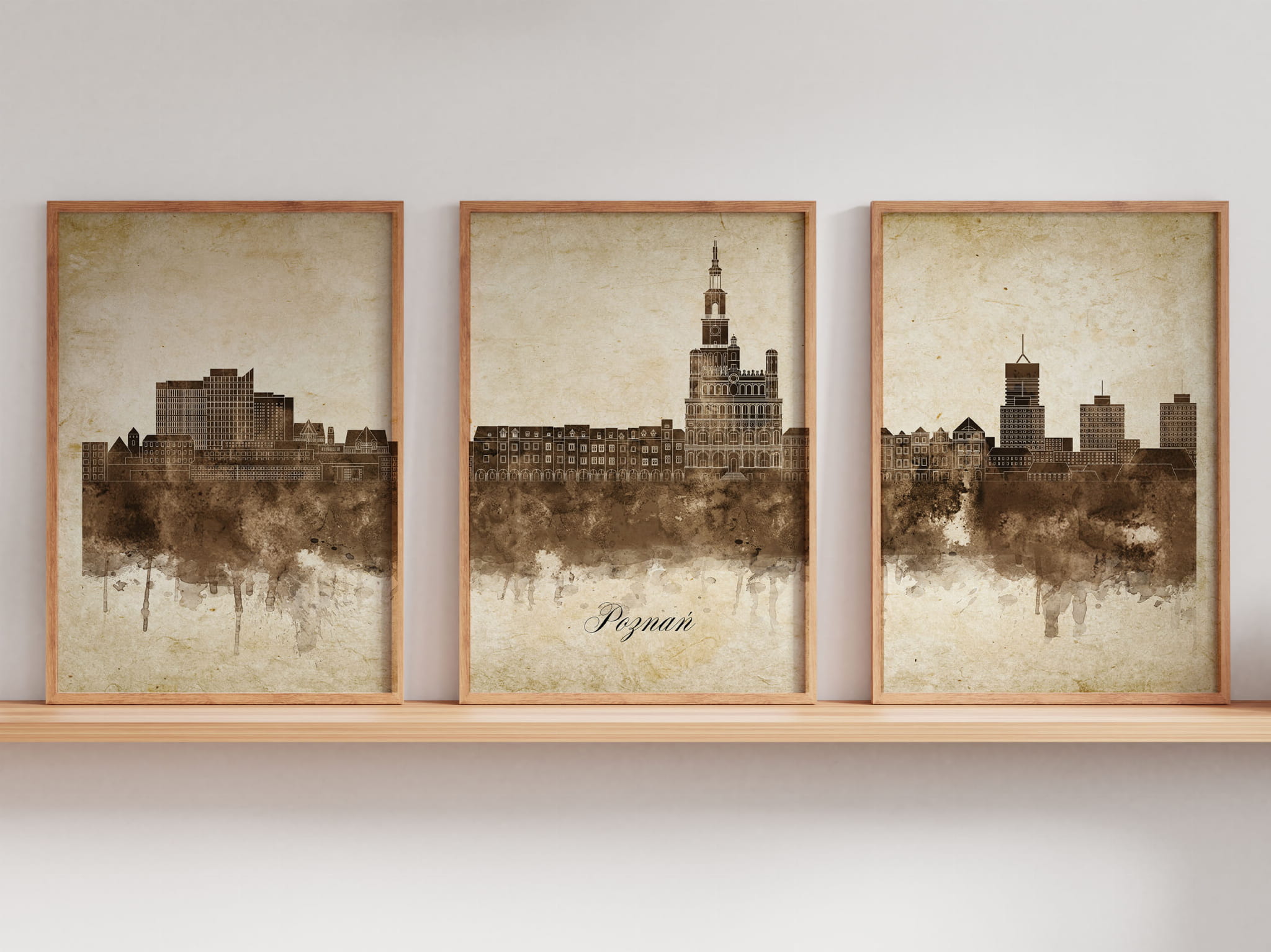 Tryptyk Skylines Poznań w stylu Vintage, Styl akwarelowy