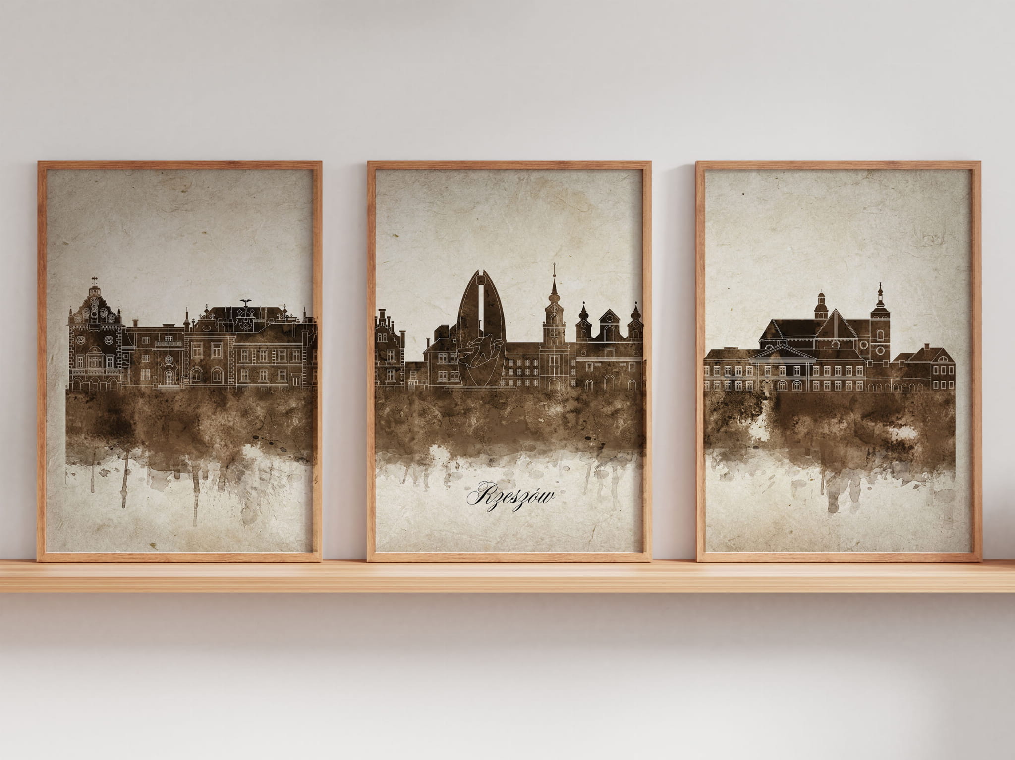 Tryptyk Skylines Rzeszów w stylu Vintage, Styl akwarelowy