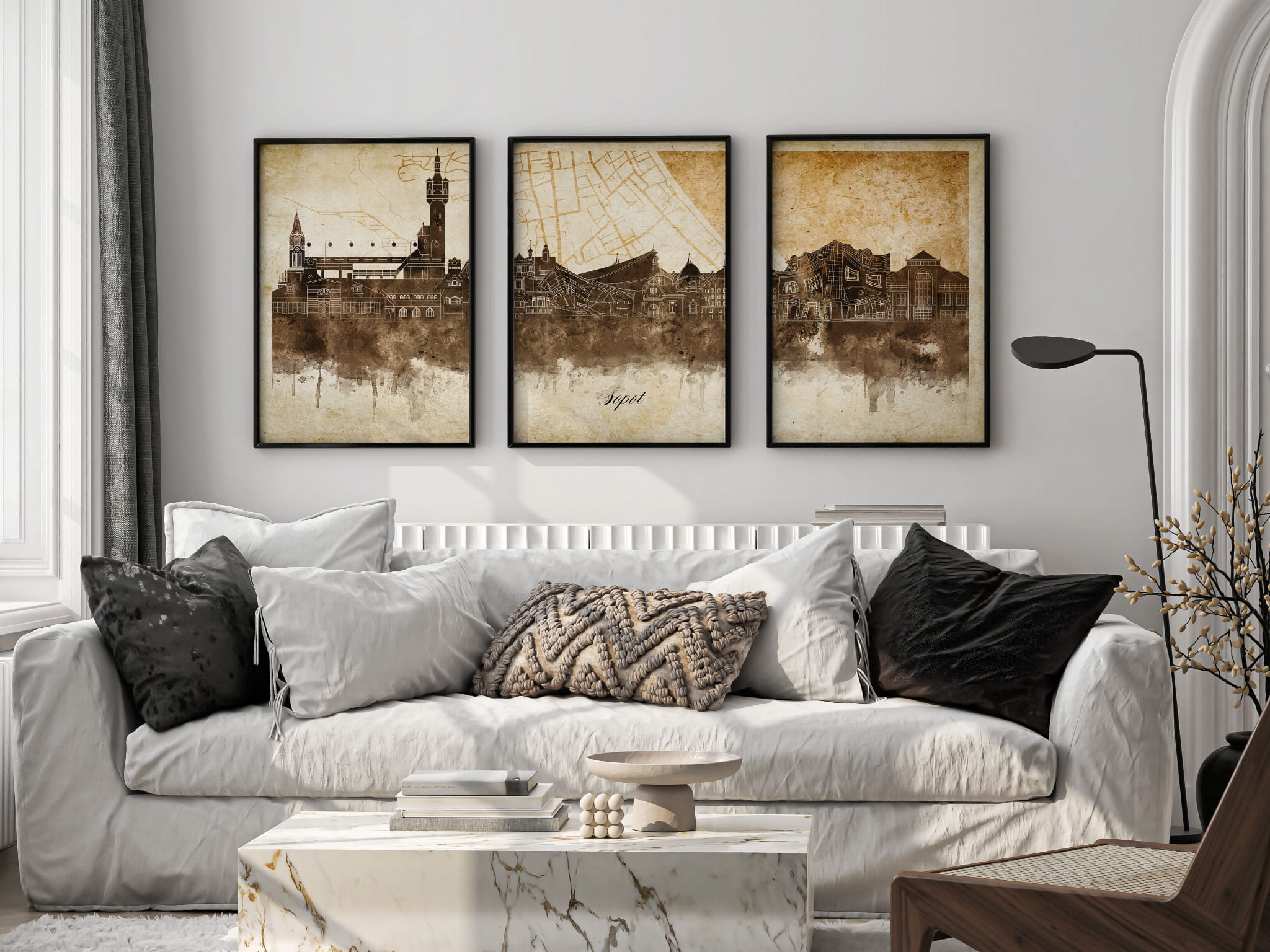 Tryptyk Skylines Sopot w stylu Vintage, Styl akwarelowy