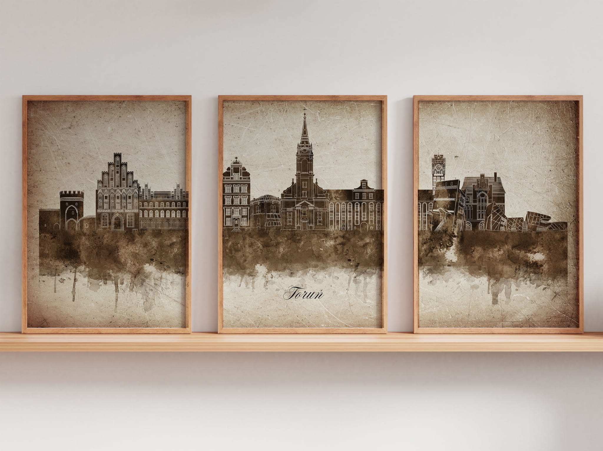 Tryptyk Skylines Toruń w stylu Vintage, Styl akwarelowy
