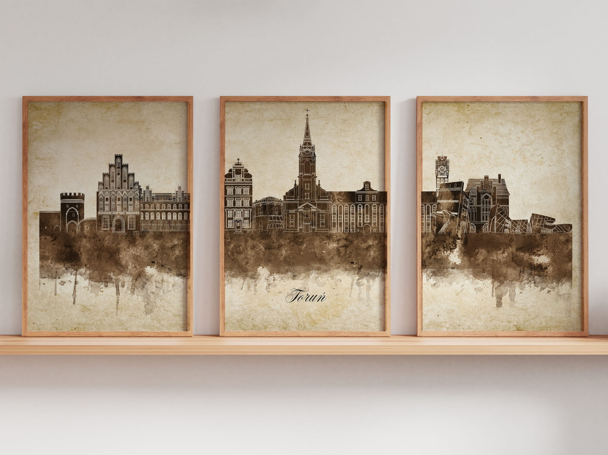 Tryptyk Skylines Toruń w stylu Vintage, Styl akwarelowy