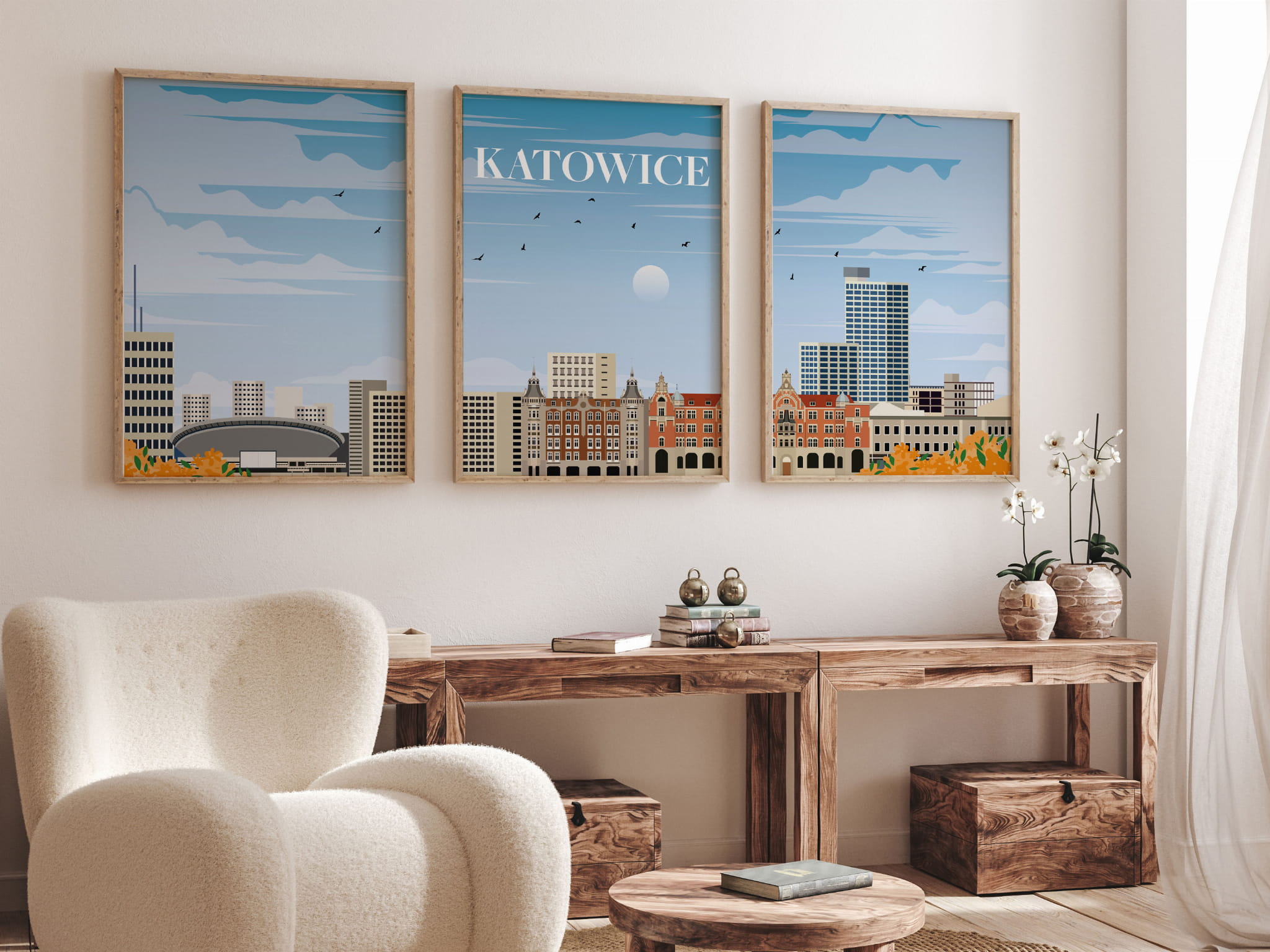Zestaw 3 plakatów podróżniczych, TRYPTYK Katowice