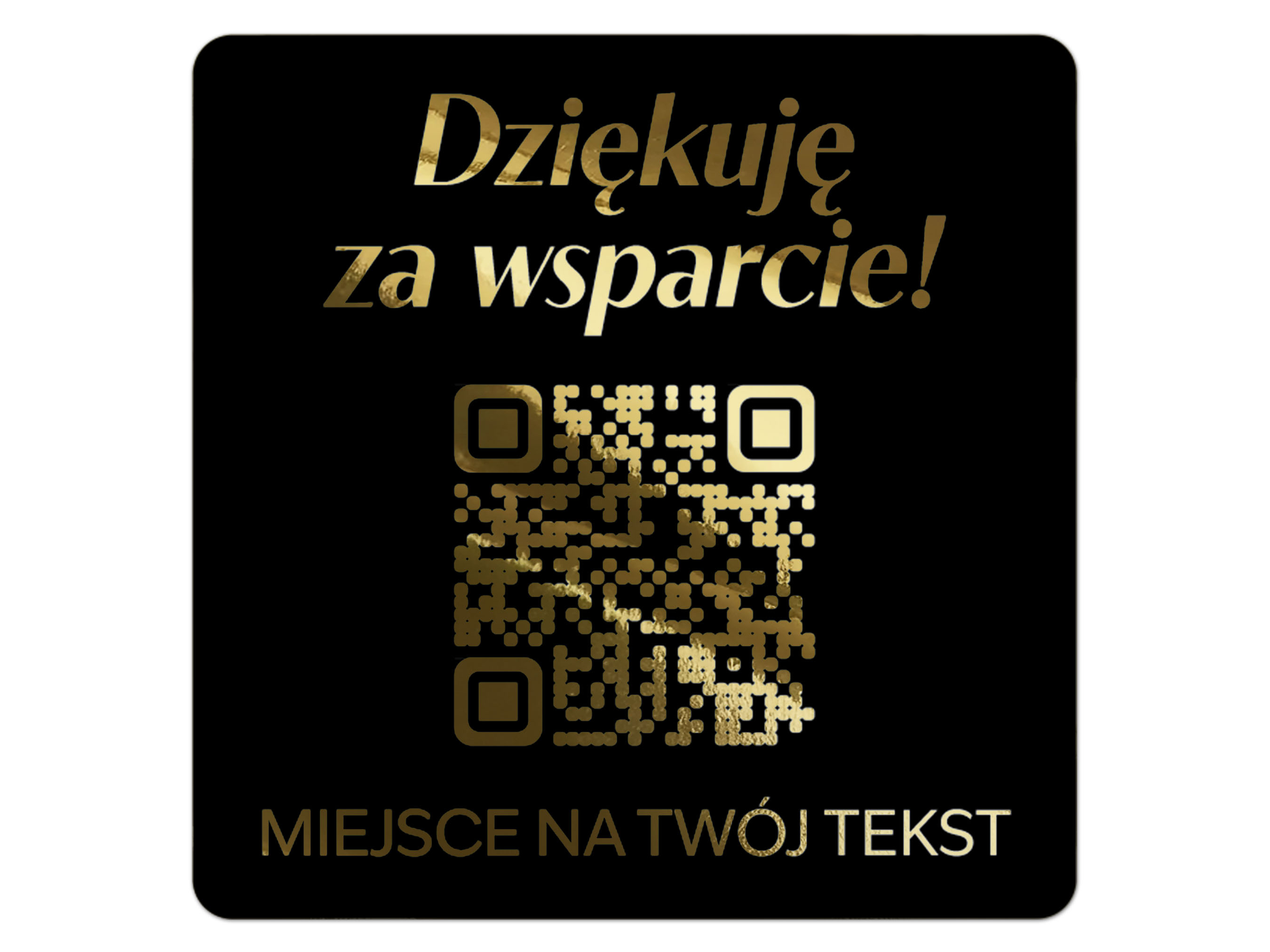 Złocone Naklejki kwadratowe z kodem QR i własnym tekstem– Czarna Folia