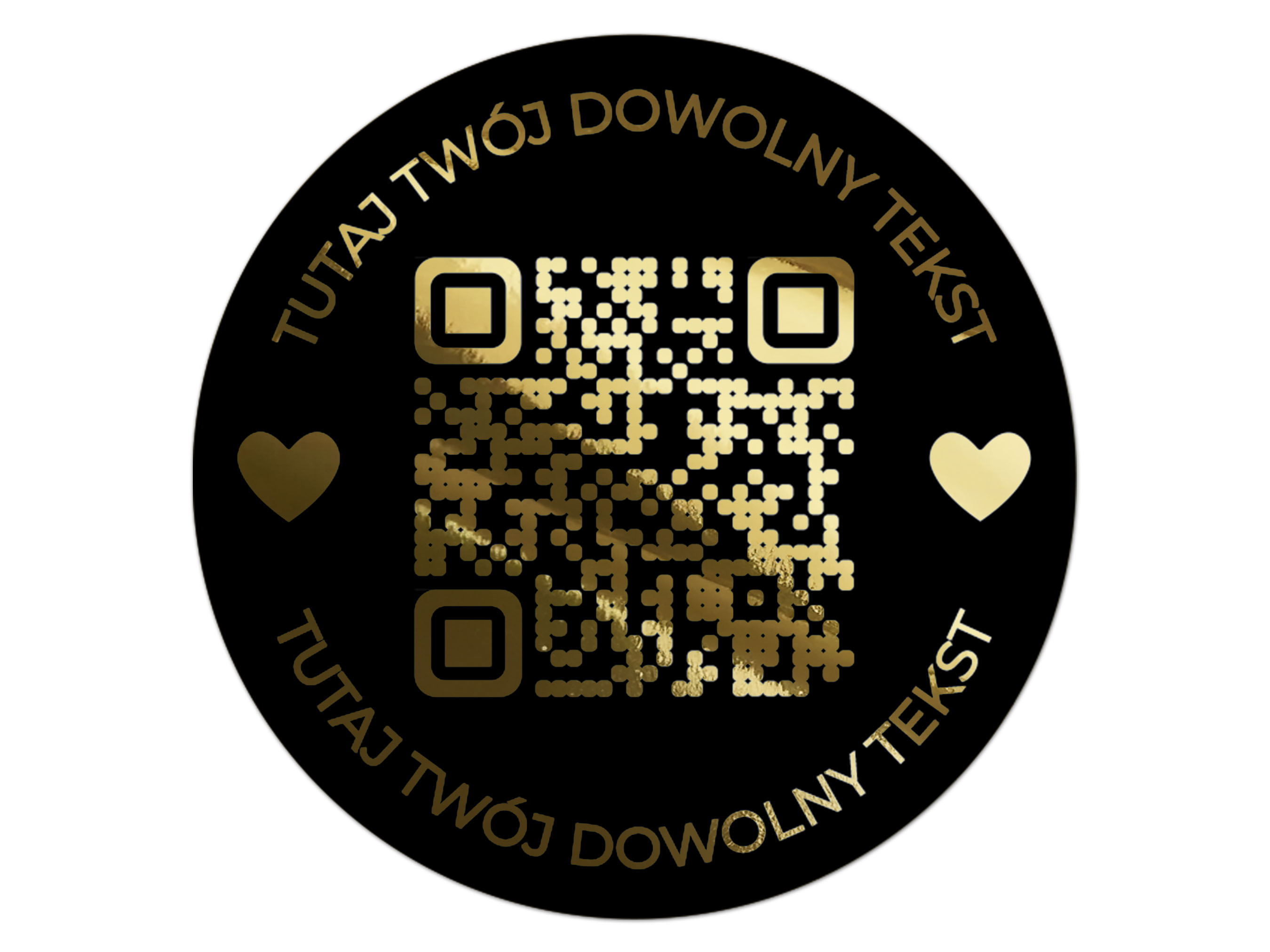 Złocone Naklejki okrągłe z kodem QR – Czarna Folia, personalizowane naklejki