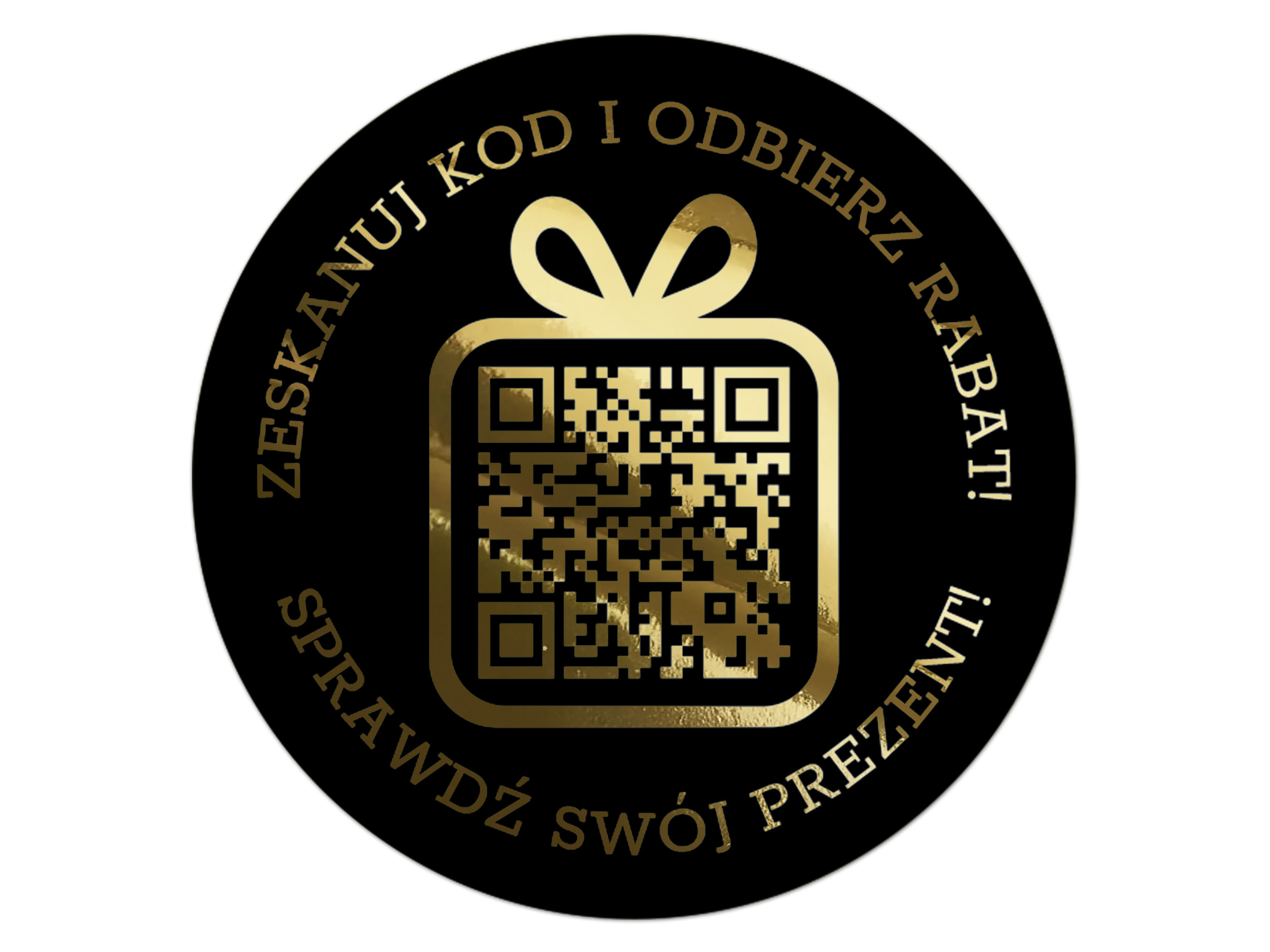 Złocone Naklejki okrągłe z kodem QR i własnym tekstem– Czarna Folia