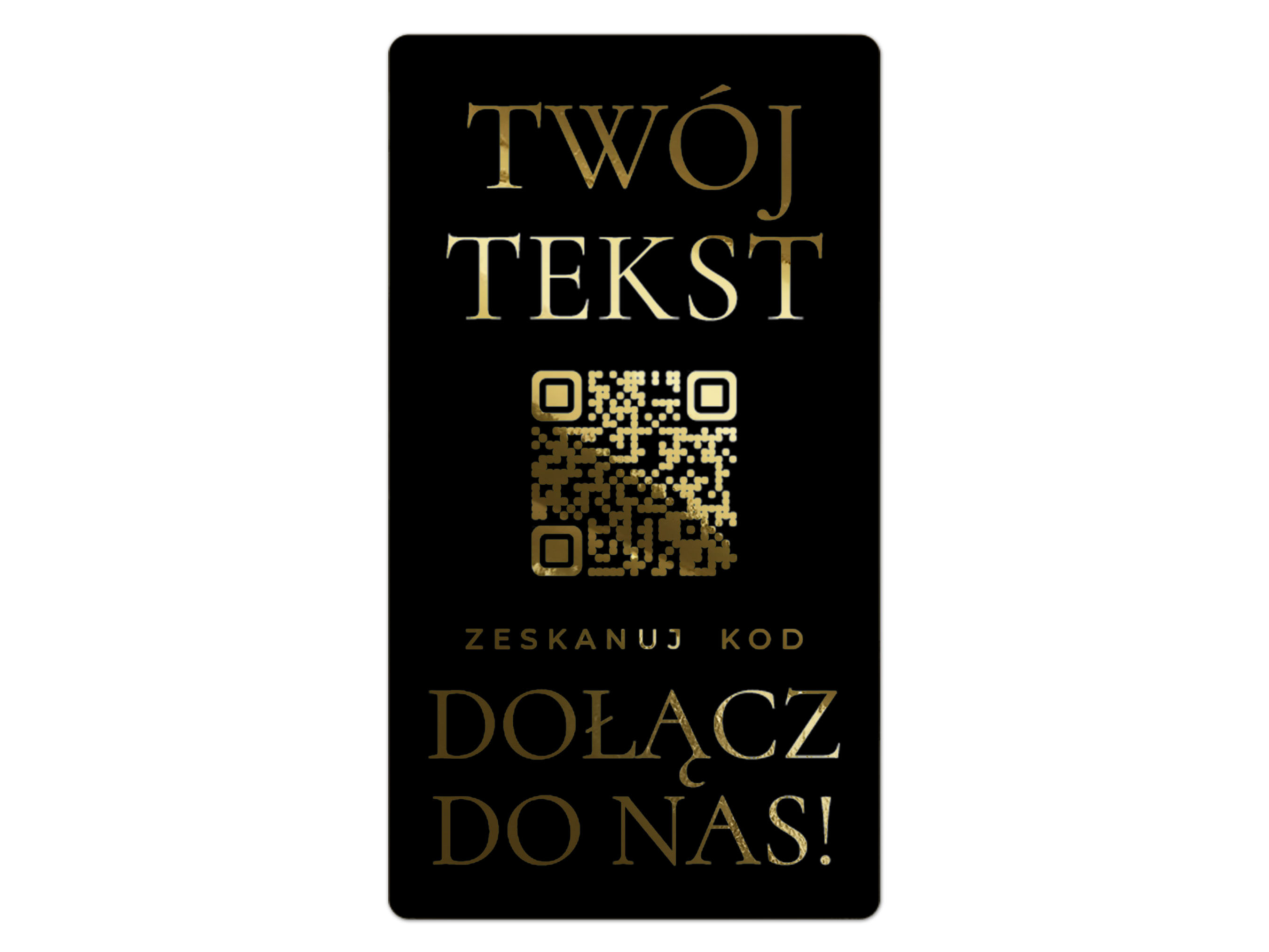Złocone Naklejki prostokątne z kodem QR i własnym tekstem – Czarna Folia, Personalizowane Naklejki