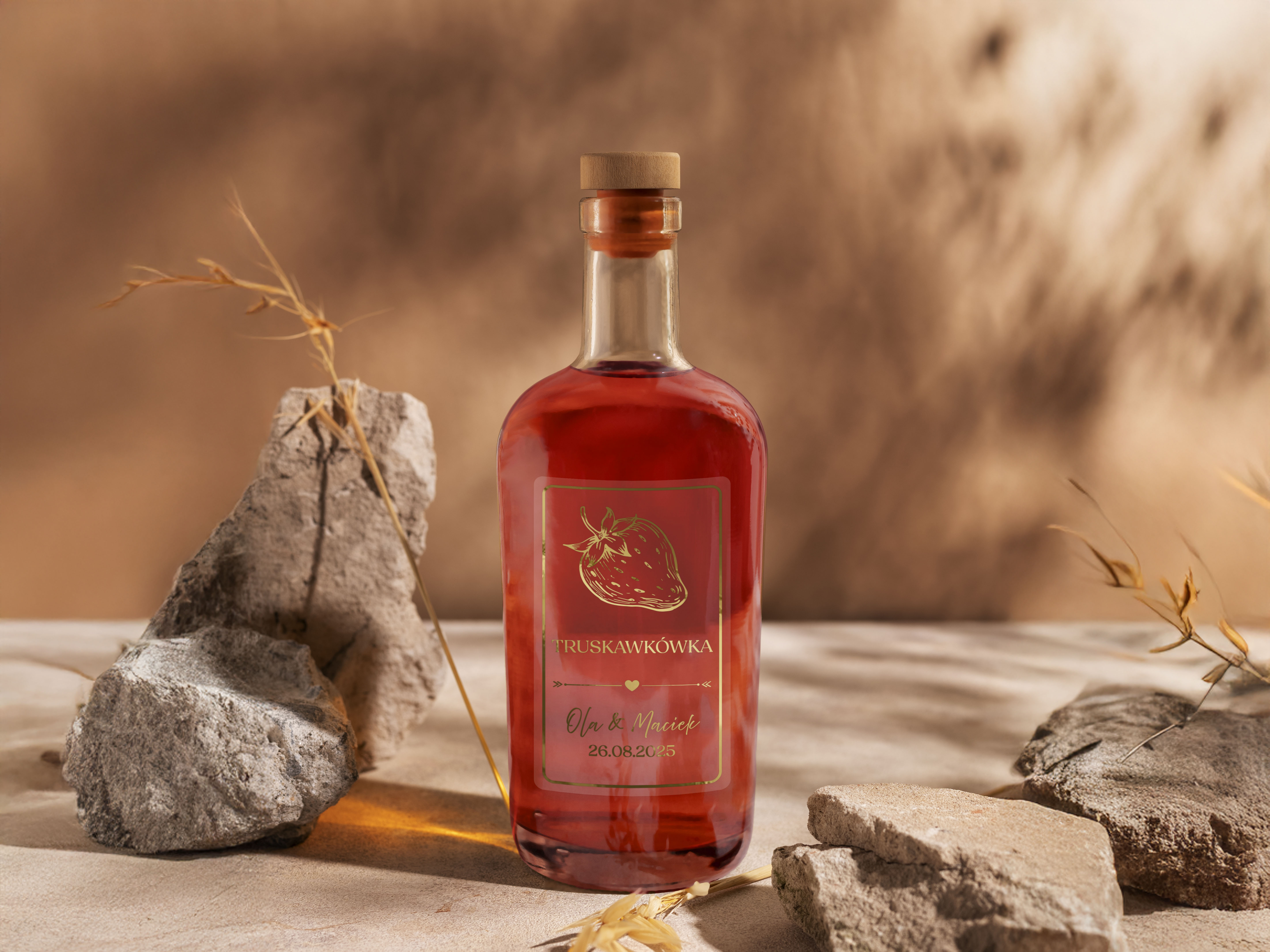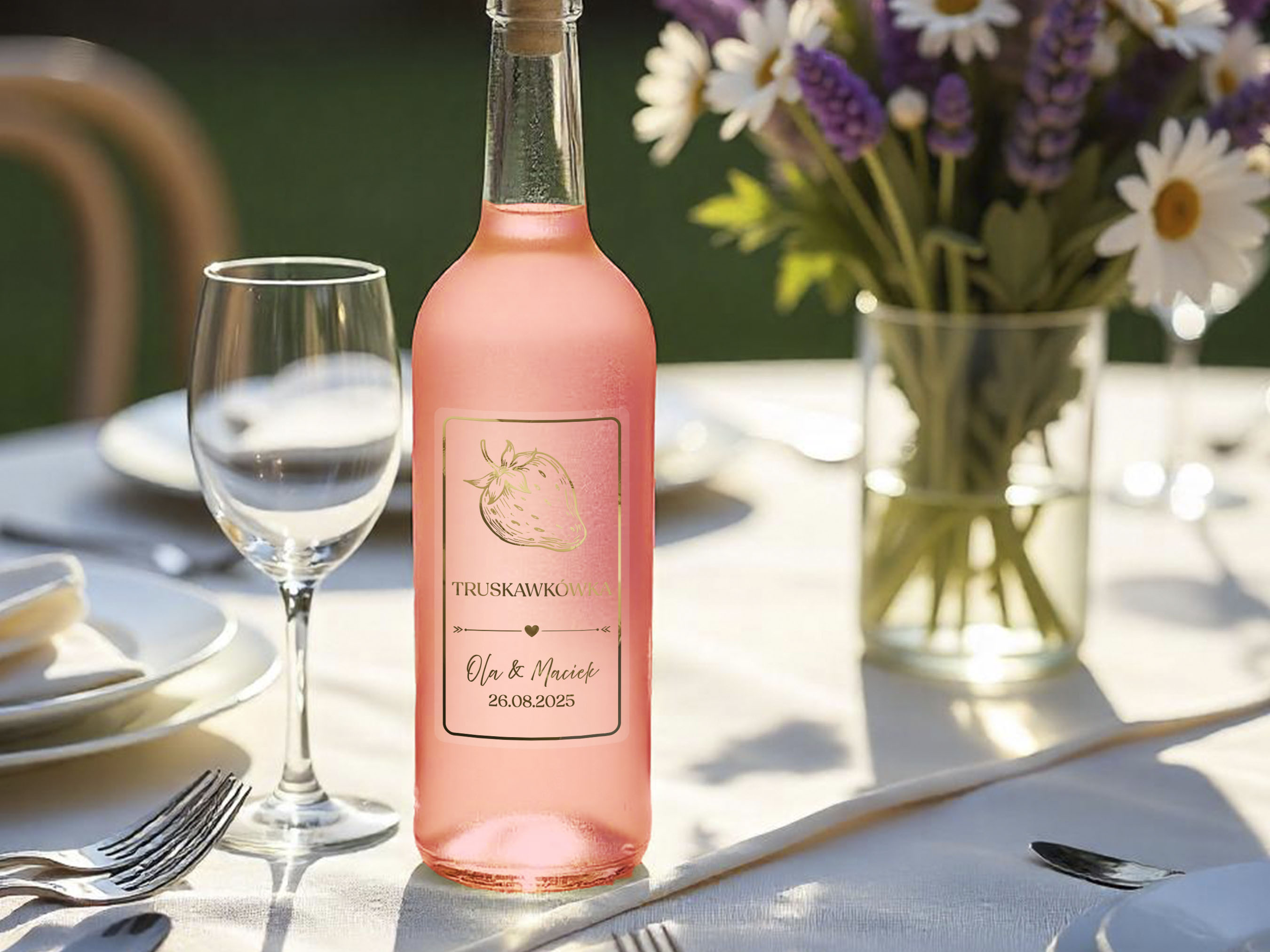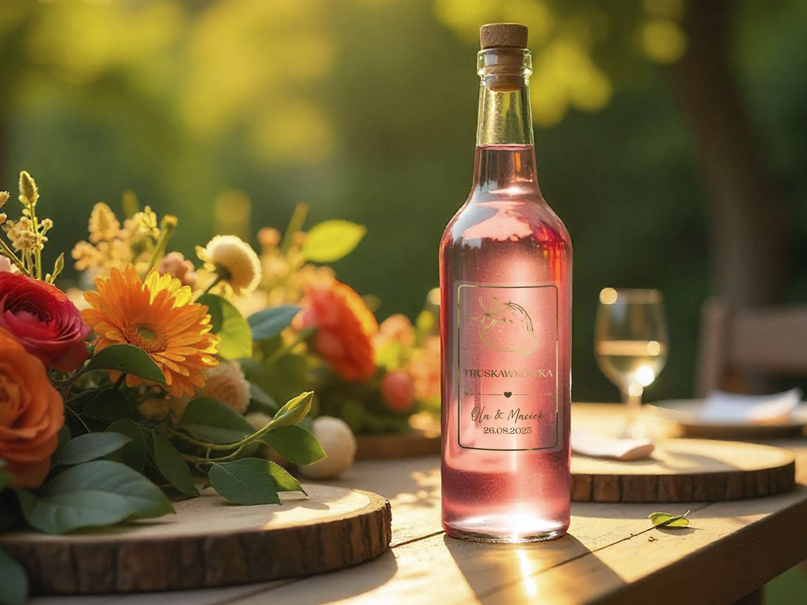 - Personalizacja: Dodaj imiona pary młodej, datę ślubu lub dowolny tekst, aby stworzyć niepowtarzalne naklejki na alkohol weselny.